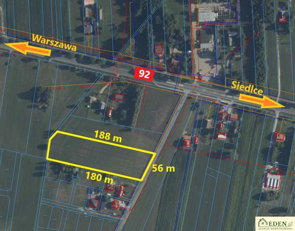 Nieruchomość (nr ewid. 485/2) z dużym potencjałem, położona przy drodze asfaltowej, oddalona o ok. 150 m od DK2 (Warszawa-Terespol).