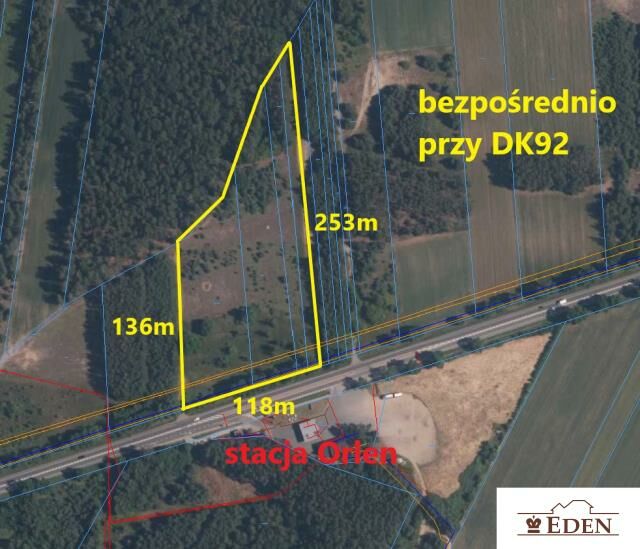 Sprzedam działkę przemysłową w miejscowości Polaki przy DK92 o powierzchni 20 264m.Działka o szerokości ok. 118m i długości ok. 136m i 253m przy drodze krajowej.